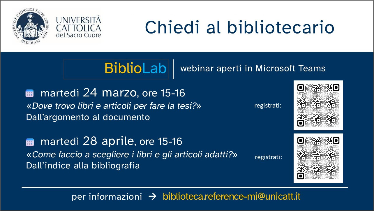 per ulteriori informazioni: biblioteca.reference-mi@unicatt.it